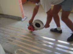 Vor Verlegung der FBH ist ein Klebetest zu machen,